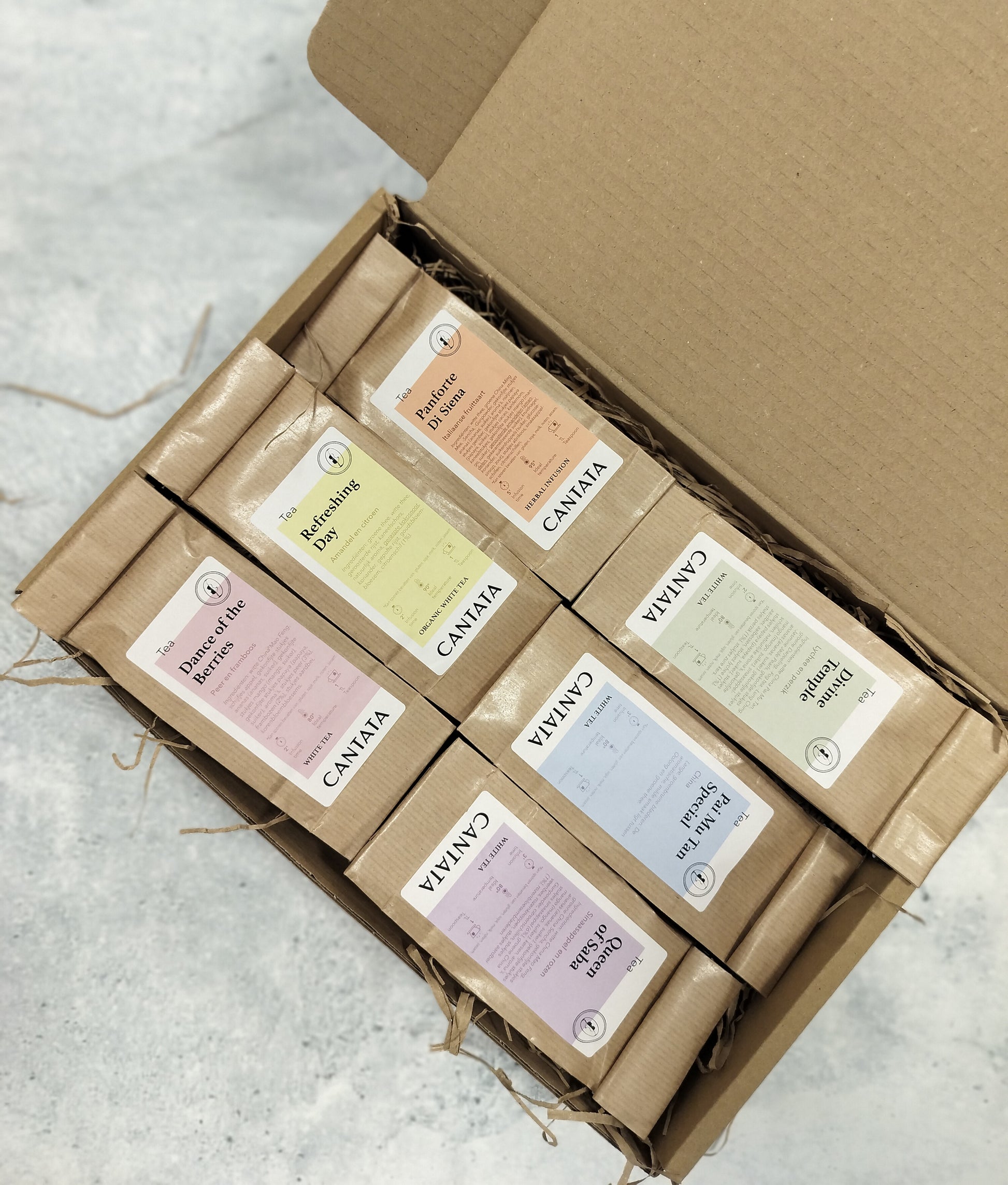 Verwen jezelf met de delicate smaken van ons Witte Thee Selectie pakket. Deze zes exclusieve witte theeën bieden een verfijnde en subtiele ervaring, perfect voor degenen die op zoek zijn naar pure, elegante smaken met een lichte en verfrissende geur.