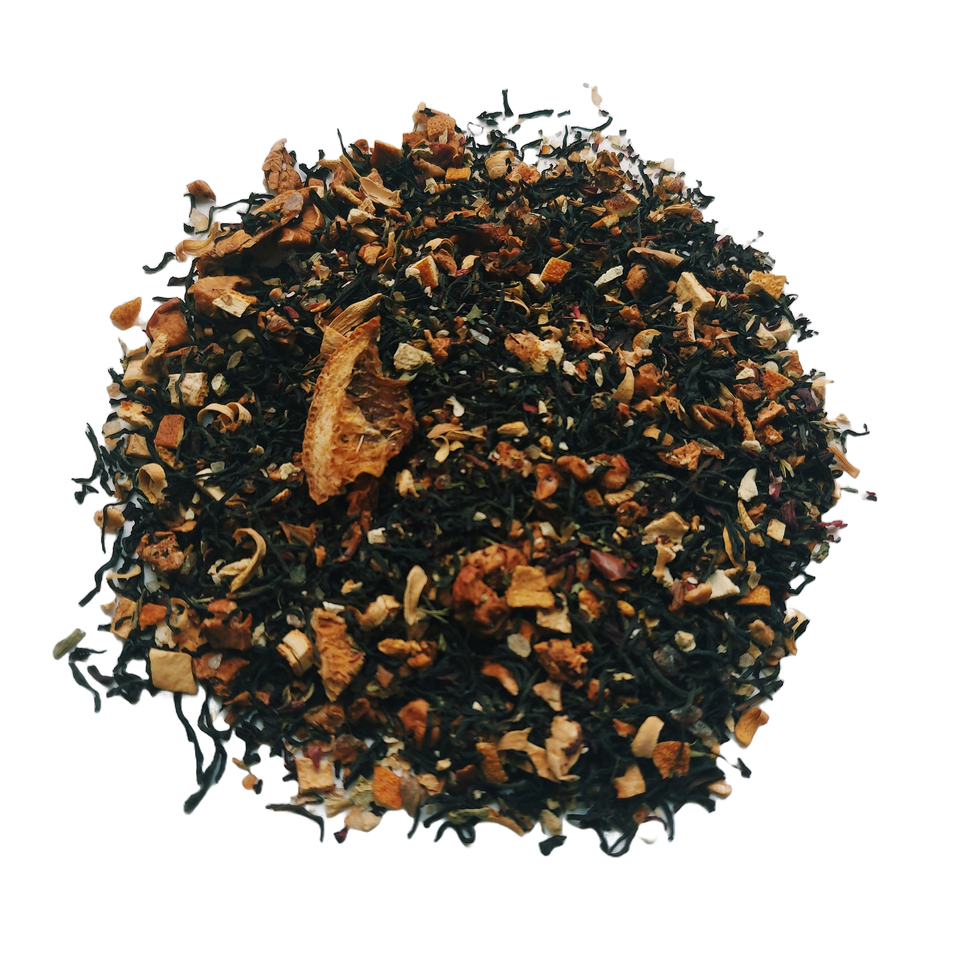 Proef de verfijnde smaak van onze zwarte thee 'Negroni,' geïnspireerd op de klassieke cocktail met gin en sinaasappel. Deze thee biedt een unieke en verrassende combinatie van krachtige zwarte thee, de complexiteit van gin, en het frisse karakter van sinaasappelsmaak. Elk slokje is als een elegante dans van smaken, waar de diepte van de thee harmonieus samensmelt met de levendige tonen van gin en de zoete verkwikking van sinaasappel. Geniet van een bijzondere theemoment met 'Negroni,' waar traditie en vernieuwing samenkomen in een smaakvolle beleving